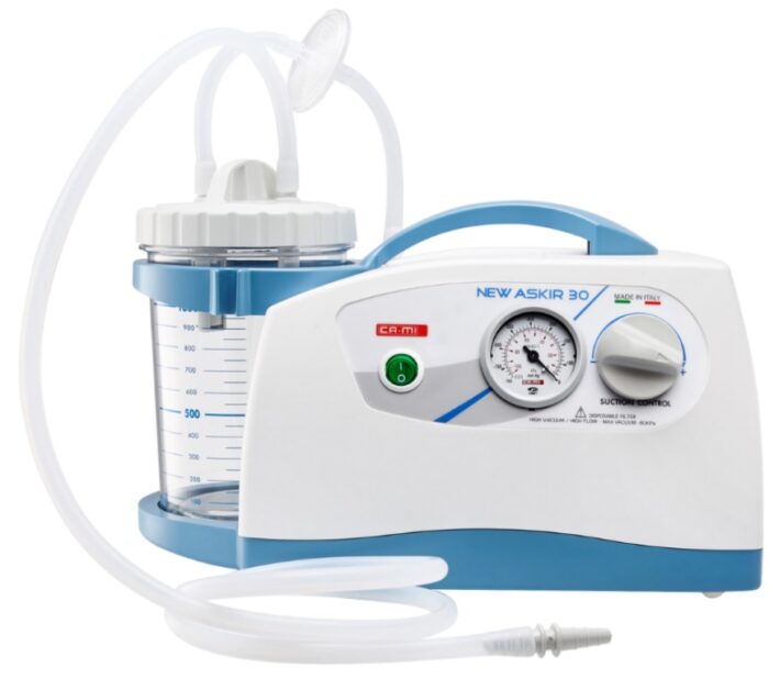 O ASKIR 30 é um aparelho de aspiração projetado para uso médico e hospitalar. Sua estrutura leve e compacta permite fácil mobilidade, e o sistema de controle com botão oferece regulagem de sucção. O reservatório é transparente e com marcações para um melhor acompanhamento do volume aspirado, ajudando no monitoramento durante o atendimento.