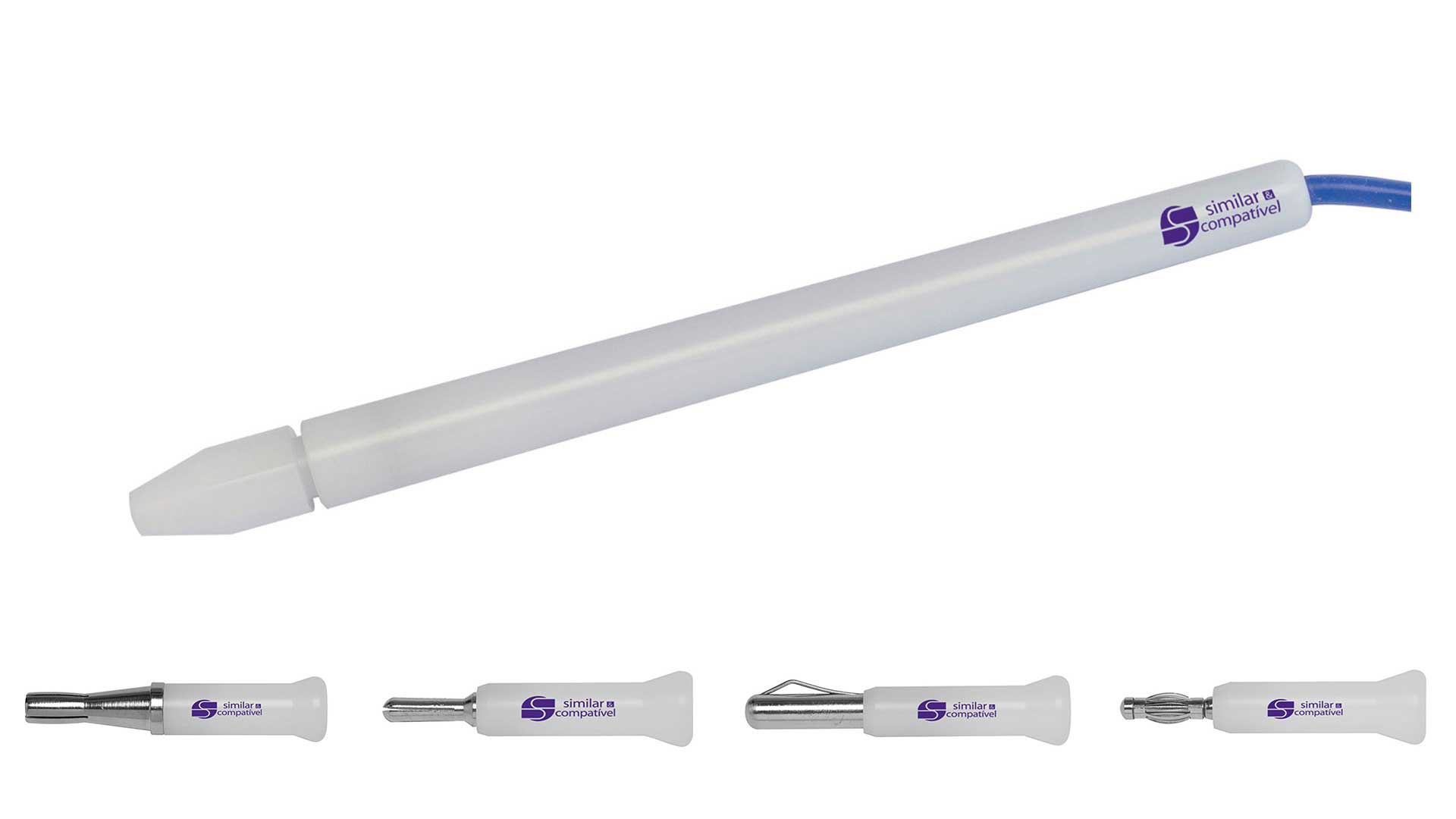 A caneta de comando pedal são aprovadas para uso em bisturis eletrônicos de até 400 watts, proporcionando controle eficiente nos procedimentos médicos. Compatível com equipamentos registrados na ANVISA, oferece precisão e segurança durante o uso.