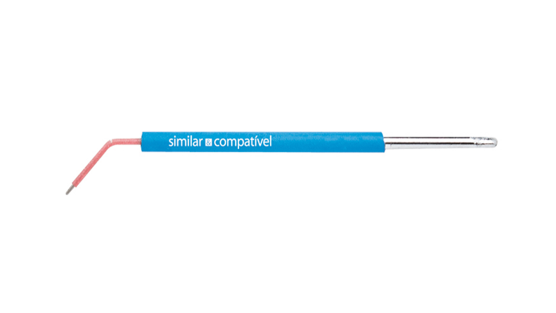 O eletrodo possui tubo capilar de inox cirúrgico de 1,6 mm, com o segmento funcional medindo 1,0 cm no ângulo de 45°, proporcionando precisão nos cortes e afastamentos gengivais em tratamentos odontológicos. Seu revestimento termo retrátil azul assegura isolamento e segurança durante o uso clínico, enquanto o design compacto favorece a manipulação em áreas delicadas.