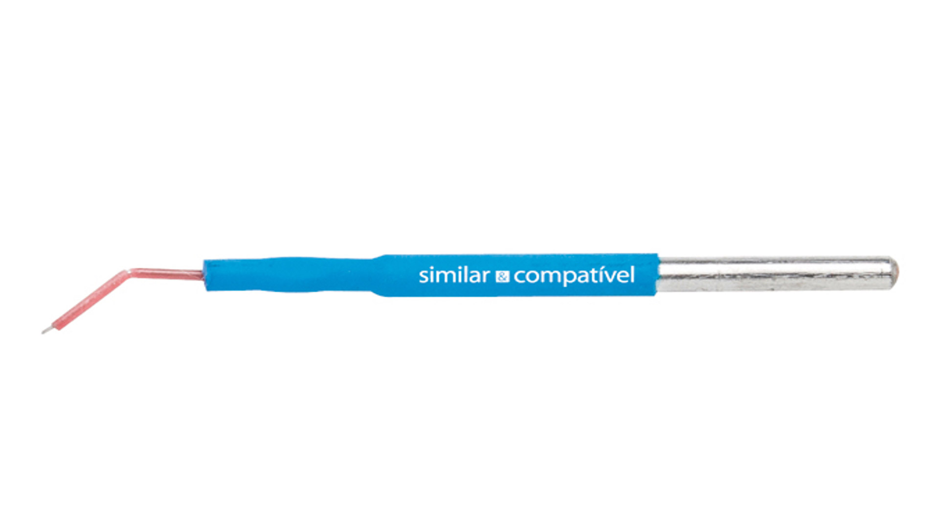 O eletrodo tipo agulha é indicado para procedimentos que requerem delicadeza e exatidão. O material cirúrgico inoxidável facilita limpeza e oferece resistência à corrosão, essencial para controle de infecções e segurança no uso. A curvatura em 45° permite acessos difíceis com maior conforto para o profissional e paciente.