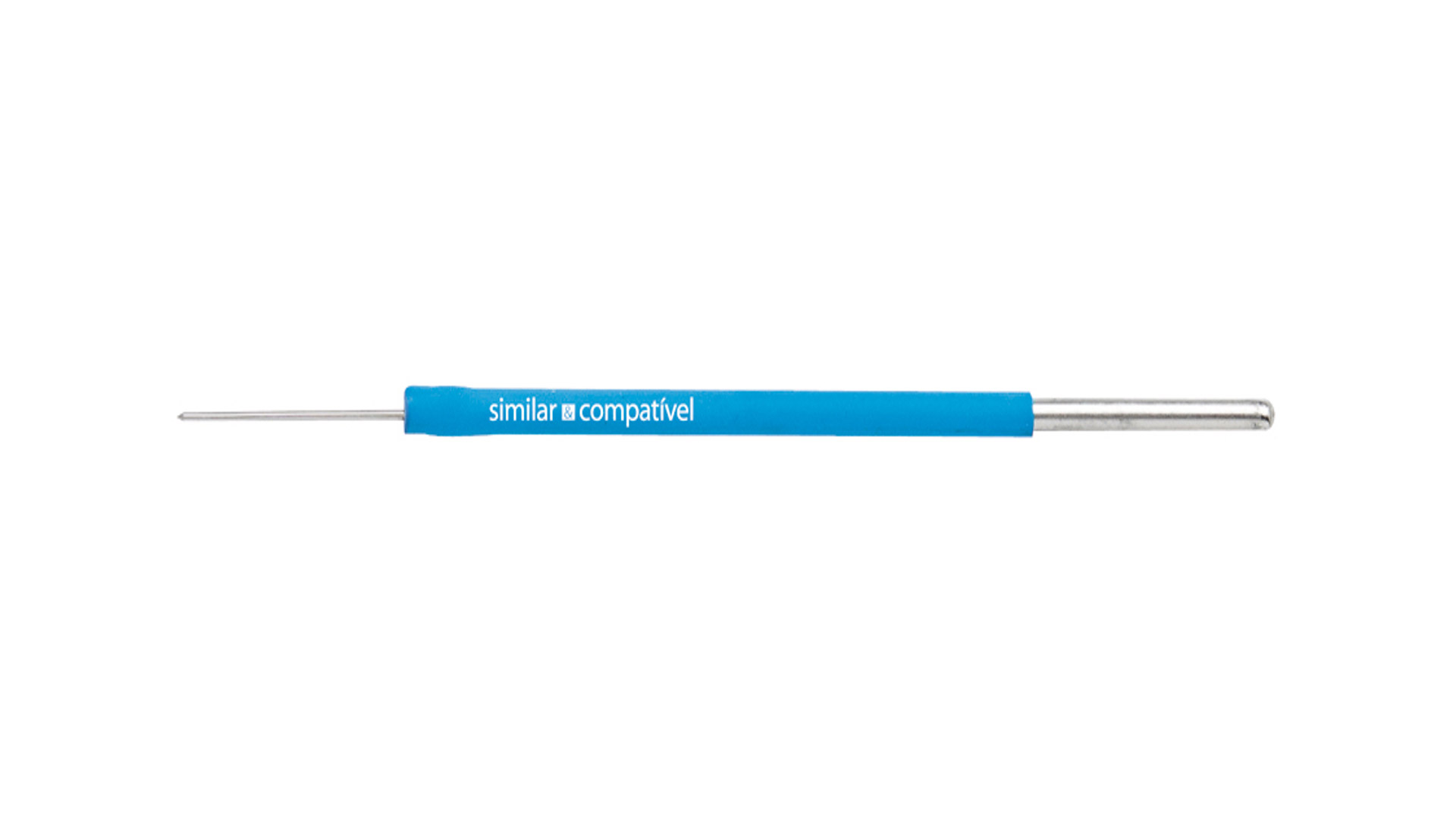Fabricado com aço inox cirúrgico para maior resistência, o eletrodo possui tubo capilar de 1,60 mm para acoplamento seguro na caneta eletrocirúrgica. A esterilização recomendada é por autoclave, assegurando a higiene necessária para uso médico.