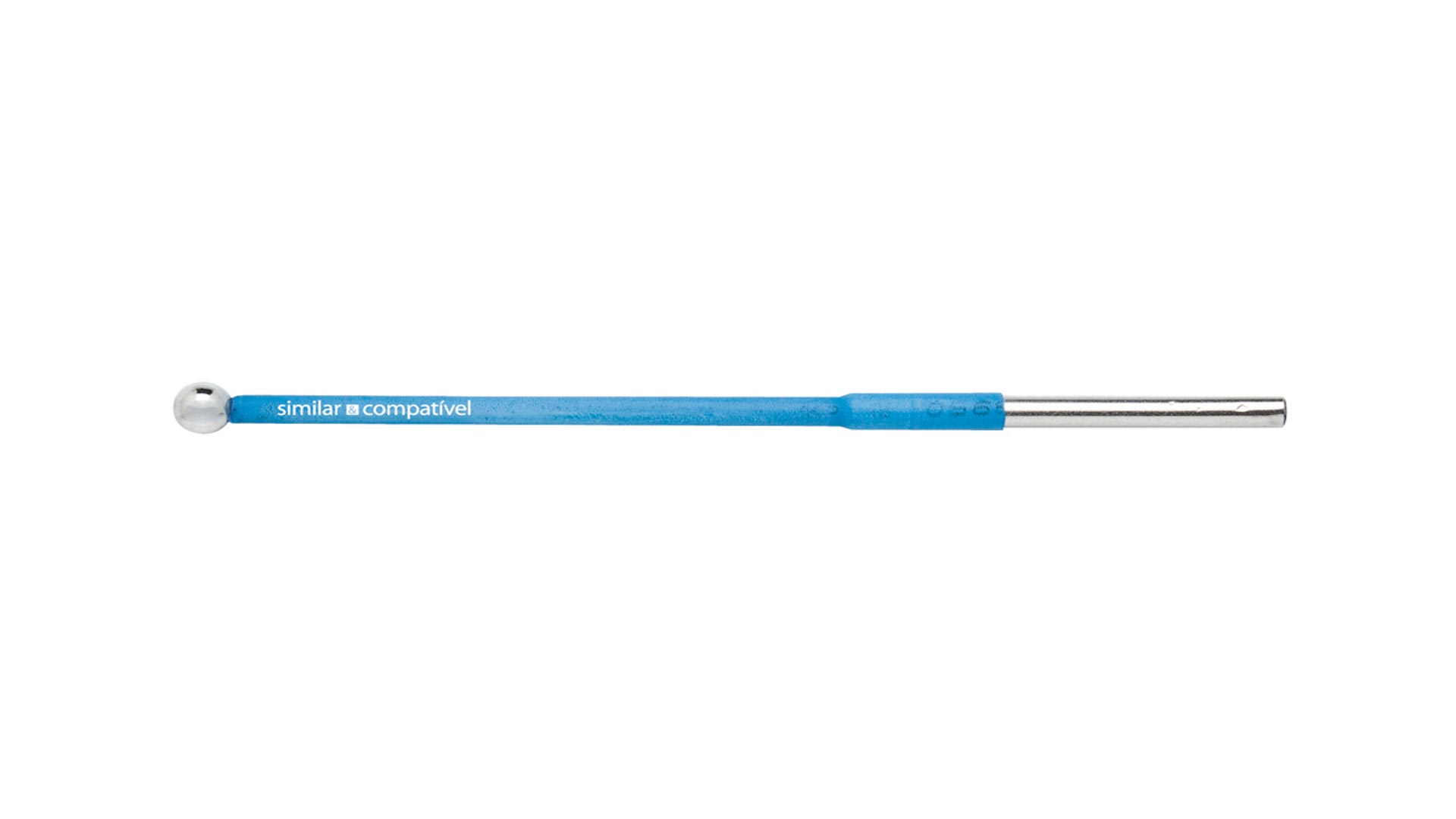 Eletrodo especializado para procedimentos médicos que exige coagulação precisa com ponta ativa em formato de bola.