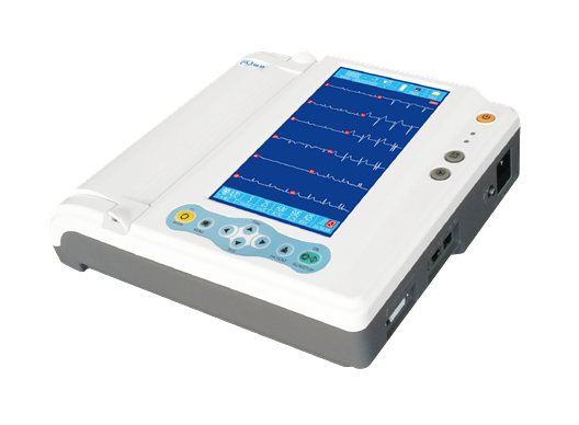 Eletrocardiógrafo digital portátil com 12 canais e tela sensível ao toque de 9 polegadas, ideal para registros precisos do ritmo cardíaco.