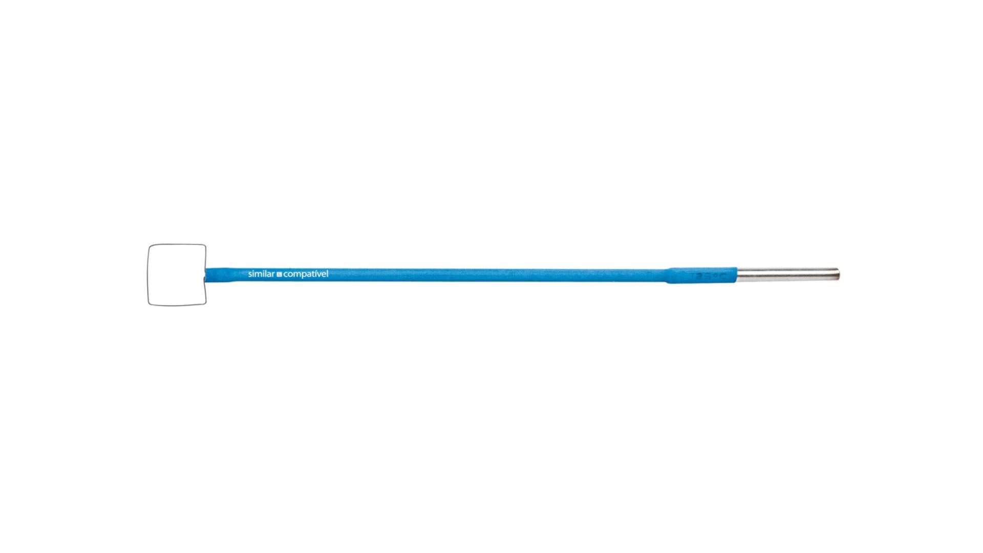 O eletrodo apresenta uma estrutura robusta em inox cirúrgico para resistir às condições do uso médico, aliado ao diâmetro ideal do arame para efetividade e precisão. O revestimento termo retrátil azul oferece maior segurança e isolamento durante o uso em eletrocirurgia.